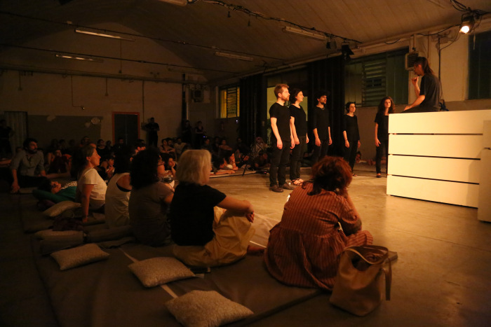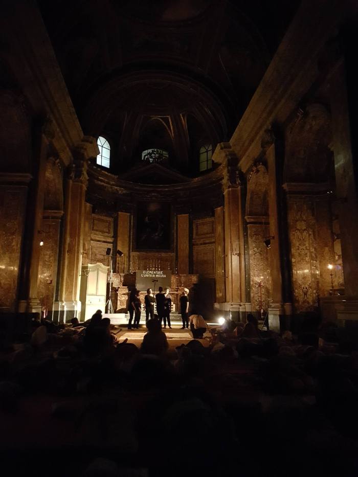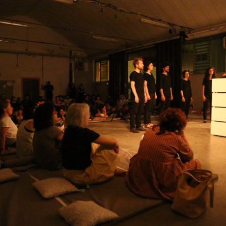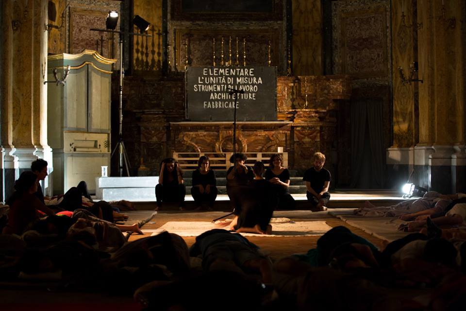 Elementary is an evocation of the rite through song, an uncertain pact around the paths that words trace when they are modeled in music. Elementary is a temporary alliance between the public and artists, called to share the time of a night. In a space equipped for sleep, a provisional community takes shape, founded on the desire to live together on a ridge, a transitory moment that will be made to last for hours. A song addressed to the night, as a time of suspension and subversion, a celebration of waiting in which the coming dawn becomes the figure of a crossing. Six voices that are consumed slowly, the exercise of a presence without certain boundaries between artists and the public, words that become declamations, silence, lists, echoes: these are the primary elements through which an attempt is made to construct a shared poetic space. While a vocabulary is slowly formed, almost a collective prayer, while the gesture of lighting a symbolic fire is made in the space between us and the others, Elementare gives voice to the desire to declare: we are here. What makes us sing for a whole night? The risk, the duration, the effort, the agreement that precedes the understanding, the invisible bond, the gathering, the change, the hospitality, the waiting, the awakening, and the silence.